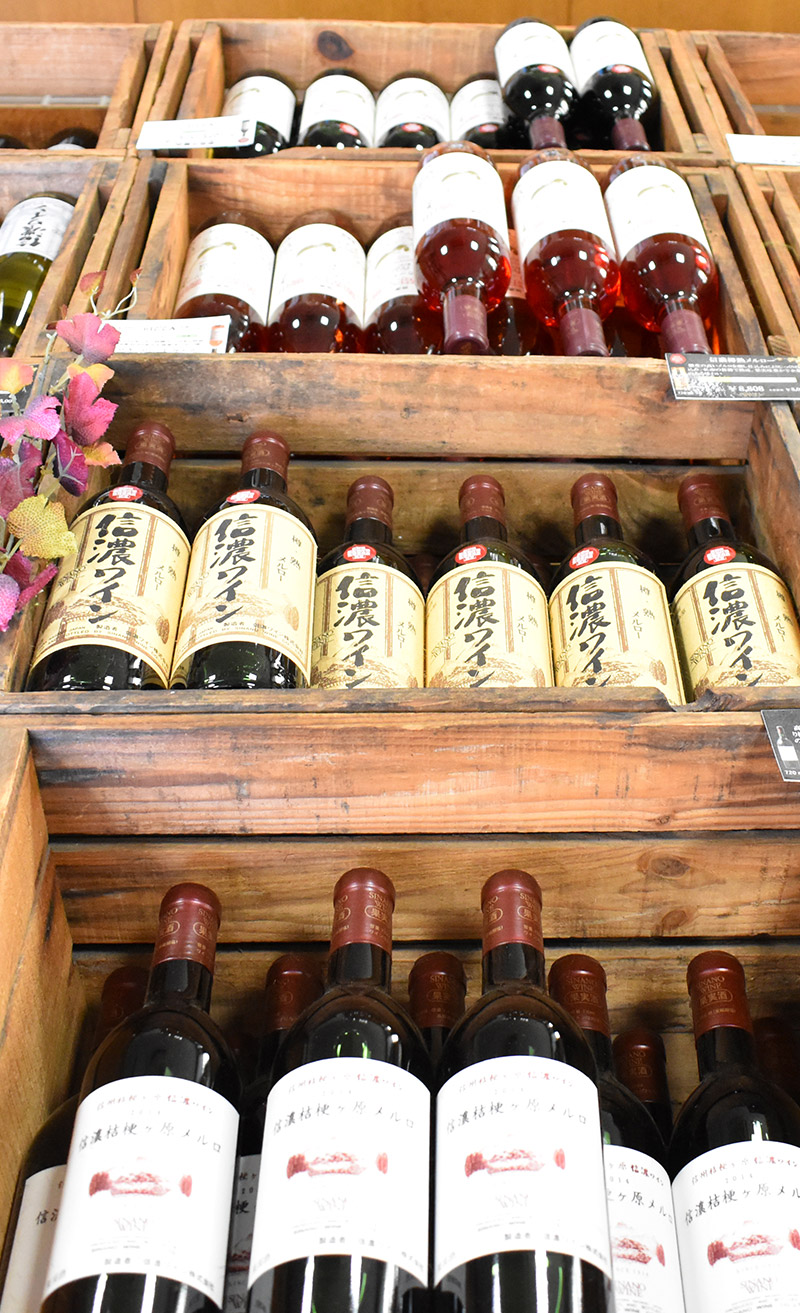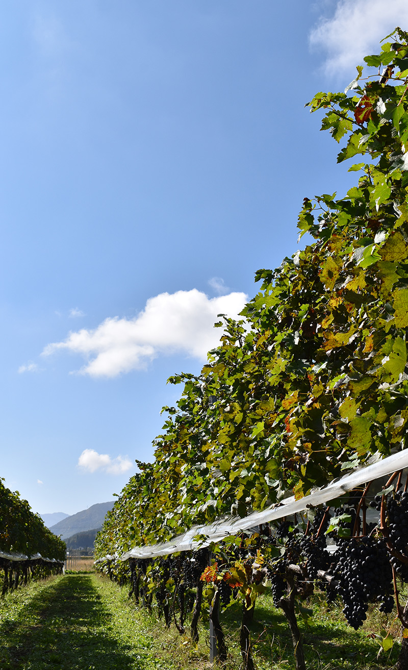 厳寒の明治時代より栽培され、この土地ならではのぶどうに成長したナイアガラやコンコードは、独特の風味を持つ薫り高いワインや上品なジュースに。欧州系の高級品種、メルローやシャルドネ、カベルネ・ソーヴィニヨンなどからは、本格的なワインの数々がつくられます。